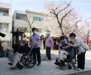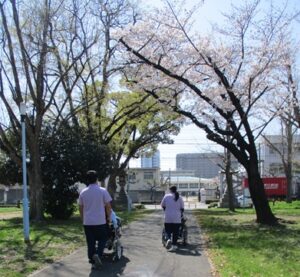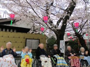 皆さんの顔にもパッと明るい笑顔が。外の空気を吸いながら愛でる桜は、やはり格別なようです。