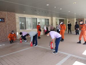 今回は消防隊の方々の立ち合いのもと訓練を行います。